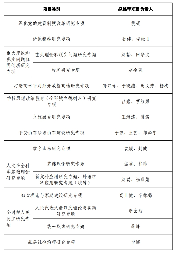 一、山东省社科规划研究限项专项申报拟推荐公示