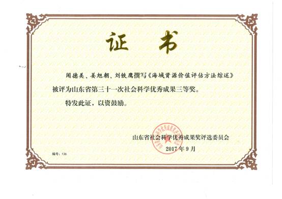 获奖等级:山东省社会科学优秀成果三等奖